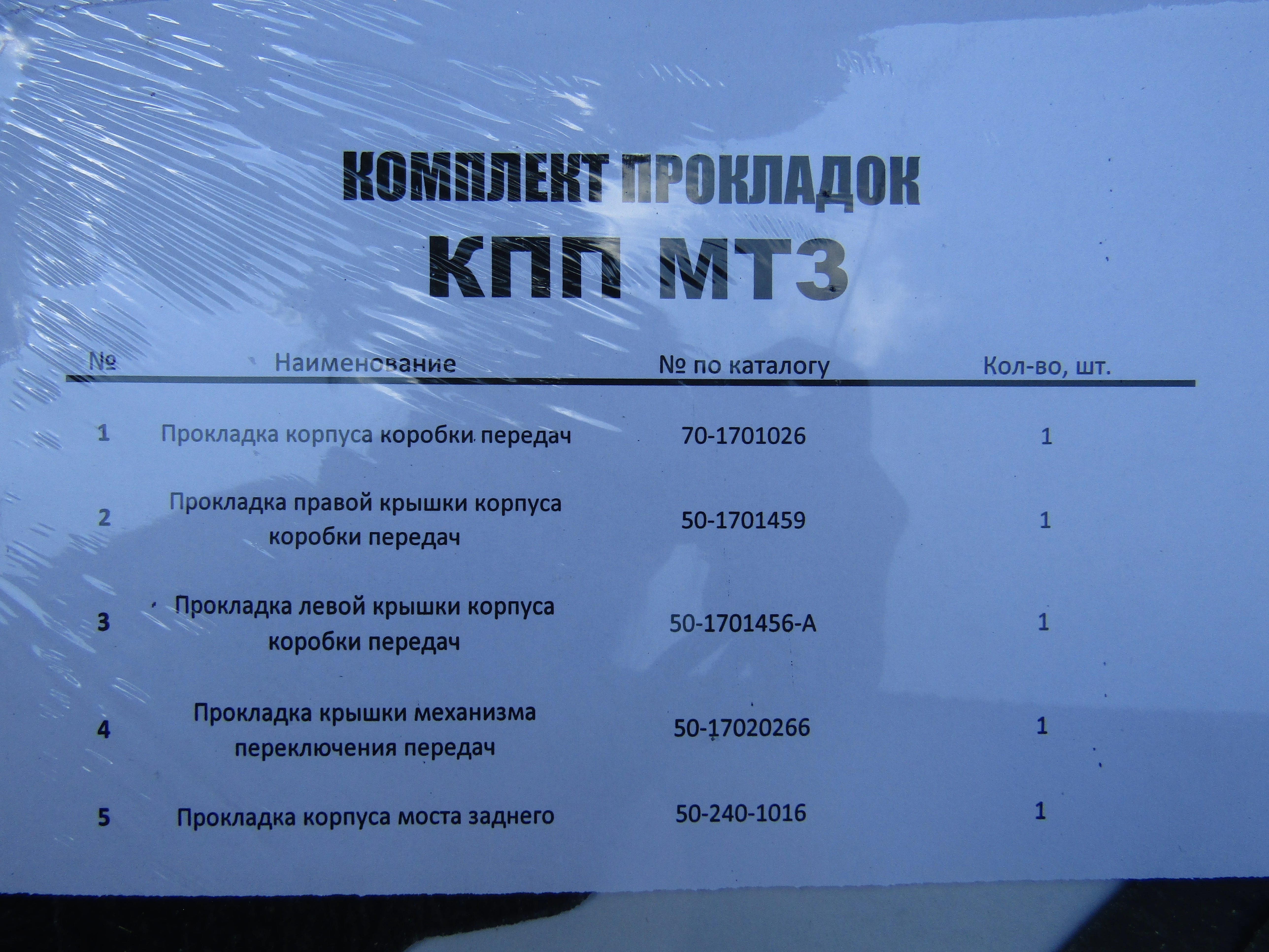 *Р/к прокладок КПП